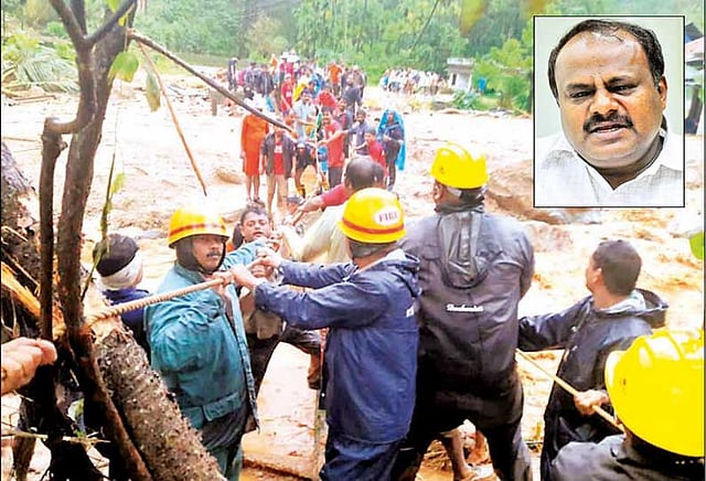 குடகு மாவட்டத்தில் மழை வெள்ளத்தில் சிக்கியவர்களை மீட்பதற்காக தேசிய பேரிடர் மீட்பு குழுவினர், ராணுவம், கடலோர காவல்படையினர், மாநில மீட்பு குழுவினர், நீச்சல் வீரர்கள், தீயணைப்பு படையினர், பொதுப்பணித்துறை அதிகாரிகள், வருவாய் துறையினர், மின்வாரிய அதிகாரிகள் என 5 ஆயிரத்திற்கும் அதிகமானோர் ஈடுபட்டு உள்ளனர்.