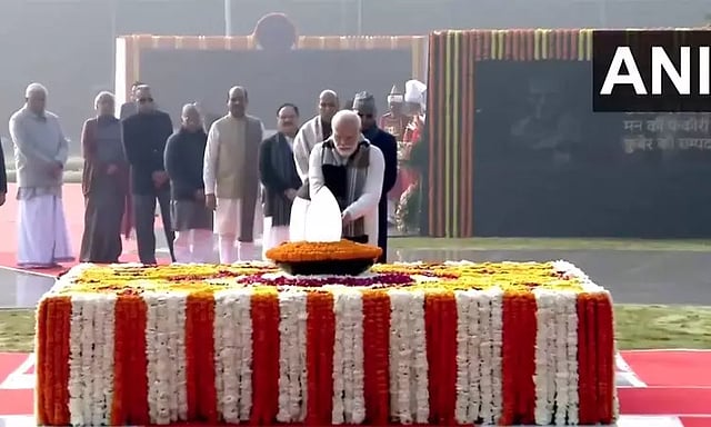 மறைந்த முன்னாள் பிரதமா அடல் பிகாரி வாஜ்பாயின் 99-ஆவது பிறந்த நாள் இன்று கொண்டாடப்படுகிறது. இதனையொட்டி டெல்லியில் உள்ள அடல் பிகாரி வாஜ்பாய் நினைவிடத்தில் துணை ஜனாதிபதி ஜெகதீப் தன்கர், பிரதமர் மோடி ஆகியோர் மலர்தூவி மரியாதை செலுத்தினர்.