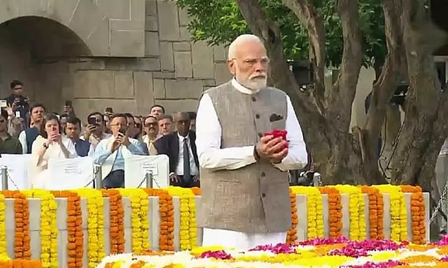 இந்திய சுதந்திர போராட்டத்தில் பெரும் பங்காற்றிய தேசத்தந்தை மகாத்மா காந்தியின் 156-வது பிறந்த நாள் இன்று கொண்டாடப்படுகிறது. இந்த நிலையில் காந்தி ஜெயந்தியை முன்னிட்டு டெல்லி ராஜ்காட்டில் உள்ள மகாத்மா காந்தி நினைவிடத்தில் பிரதமர் நரேந்திர மோடி மலர் தூவி மரியாதை செலுத்தினார்.