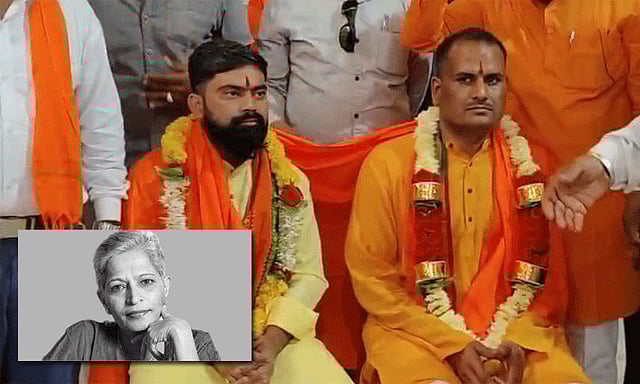 இதனிடையே சிறையில் இருந்து விடுதலையாகி விஜயபுரா வந்த கவுரி லங்கேஷ் கொலையாளிகள் 2 பேருக்கு காவி சால்வை போர்த்தி இந்து அமைப்பினர் பிரம்மாண்ட வரவேற்பு கொடுத்துள்ளனர். பின்னர் கொலையாளிகள் 2 பேரும் சிவாஜி சிலைக்கு அழைத்துச் செல்லப்பட்டு மாலை அணிவிக்கச் செய்தனர். மேலும் கோவில்களுக்கும் அழைத்துச் செல்லப்பட்டு சிறப்பு பூஜைகள் செய்தனர். 6 ஆண்டுகள் சிறைவாசத்துக்குப் பின்னர் ஜாமீனில் விடுதலையான கவுரி லங்கேஷ் கொலையாளிகளுக்கு இந்து அமைப்பினர் அளித்த இந்த வரவேற்பு பெரும் அதிர்ச்சியை ஏற்படுத்தி இருக்கிறது. சமூக ஆர்வலர்கள் பலரும் கடும் கண்டனம் தெரிவித்து வருகின்றனர்.