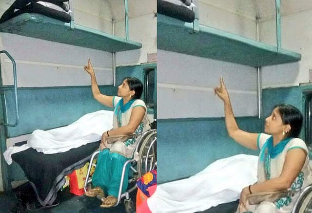போலியோ காரணமாக 90 சதவிதம் பாதிப்பட்ட மாற்று திறனாளி வீராங்கனை சுவர்ணா ராஜ், மாற்று திறனாளிகளுக்கான விளையாட்டு போட்டிகளில் இந்தியாவிற்காக பதக்கங்கள் வாங்கி உள்ளார். நேற்று இரவு 8:45 மணியளவில் நாக்பூர் - புதுடெல்லி காரிப் ராத் எக்ஸ்பிரஸ் ரெயிலில் ஏறிஉள்ளார். ரெயிலில் மாற்று திறனாளிகளுக்கான பெட்டியில் அவருக்கு மேல் படுக்கை ஒதுக்கீடு செய்யப்பட்டு உள்ளது. தன்னால் மேல் படுக்கைக்கு செல்ல முடியாது எனவும் மாற்று ஏற்பாடு செய்து தறுமாறும் டிடிஇயிடம் சுவர்ணா ராஜ் கோரிக்கை விடுத்து உள்ளார்.