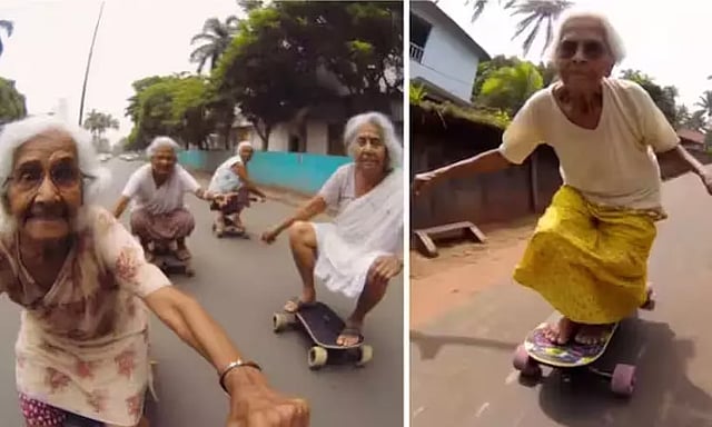 Grandmas Skating' என்ற தலைப்புடன் அந்த படங்கள் பகிரப்பட்டு உள்ளது.அதில் நான்கு படங்கள் உள்ளன. நான்கு படங்களுமே வித்தியாசமான ஆனால் வயதான பெண்கள் ஸ்கேட்டிங் செய்வதைக் போல் உள்ளது.
