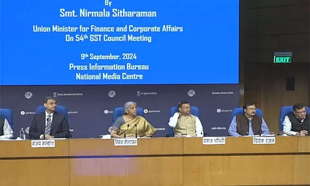மத்திய நிதி மந்திரி நிர்மலா சீதாராமன் தலைமையில் டெல்லியில் இன்று 54-வது ஜி.எஸ்.டி. கவுன்சில் கூட்டம் நடைபெற்றது. இக்கூட்டத்தில் மத்திய நிதித்துறை இணை மந்திரி பங்கஜ் சவுத்ரி, கோவா, மேகாலயா முதல்-மந்திரிகள், அருணாச்சல பிரதேசம், பீகார், மத்திய பிரதேசம், தெலுங்கானா ஆகிய மாநிலங்களின் துணை முதல்-மந்திரிகள் மற்றும் அனைத்து மாநிலங்கள் மற்றும் யூனியன் பிதேசங்களின் நிதியமைச்சர்கள், மூத்த அதிகாரிகள் கலந்துகொண்டனர்.