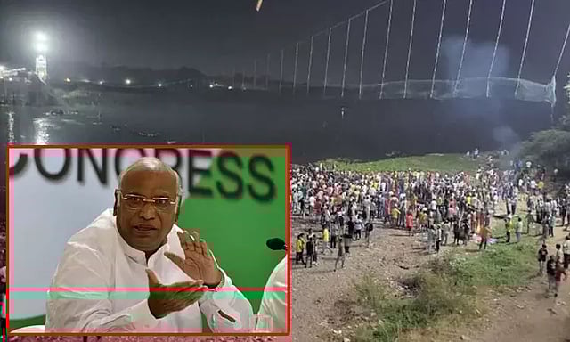 இந்த நிலையில், குஜராத்தின் மோர்பி தொங்கு பாலம் விபத்து சம்பவம் தன்னை சோகத்தில் ஆழ்த்தியுள்ளதாக காங்கிரஸ் தலைவர் மல்லிகார்ஜுன கார்கே தெரிவித்துள்ளார். விபத்தில் உயிரிழந்தவர்களின் குடும்பங்களுக்கு ஆழ்ந்த இரங்கலையும், அனுதாபத்தையும் அவர் தெரிவித்துள்ளார். மேலும் மீட்புப் பணிகளிலும், காயமடைந்தவர்களுக்கு தேவையான உதவிகளையும் காங்கிரஸ் தொண்டர்கள் செய்ய வேண்டும் என மல்லிகார்ஜுன கார்கே கேட்டுக் கொண்டுள்ளார்.