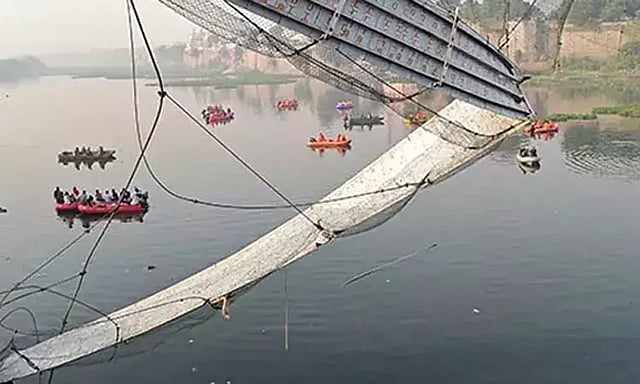 குஜராத்தின் மோர்பியில் உள்ள மச்சூ நதி மீது கட்டப்பட்டிருந்த பழமையான தொங்கு பாலம் கடந்த அக்டோபர் 30-ந்தேதி திடீரென இடிந்து விழுந்தது. இதில் 135 பேர் பரிதாபமாக உயிரிழந்தனர். இந்த சம்பவம் தெடர்பாக விரிவான விசாரணைக்கு உத்தரவிடப்பட்டது. மேலும் இந்த விபத்து தொடர்பாக குஜராத் ஐகோர்ட்டு தாமாக வந்து வழக்கு பதிவு செய்து விசாரணை நடத்தி வந்தது.