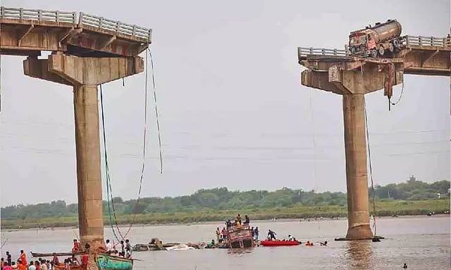 குஜராத் மாநிலம் வதோதரா மற்றும் ஆனந்த் மாவட்டங்களை இணைக்கும் வகையில் மஹிசாகர் ஆற்றின் குறுக்கே 900 மீட்டர் நீள பாலம் கடந்த 40 ஆண்டுகளுக்கு முன்பு கட்டப்பட்டது.