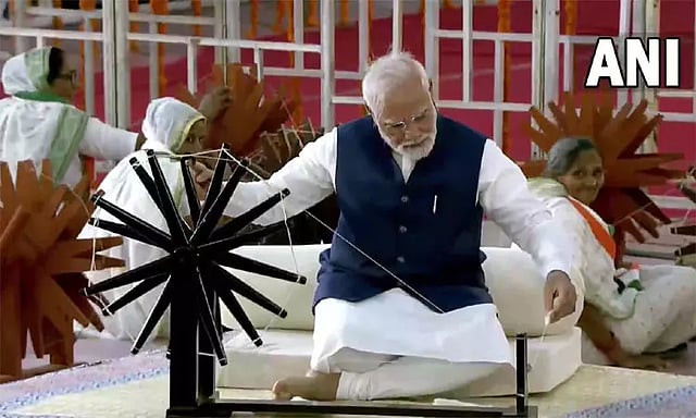 இந்தியா சுதந்திரம் அடைந்து 75 ஆண்டு நிறைவடைந்ததை குறிக்கும் வகையில் 7 ஆயிரத்து 500 பெண்கள் நிகழ்ச்சியில் கலந்து கொண்டு ஒரே நேரத்தில் ராட்டையில் நூல் நூற்றனர். பிரதமர் மோடியும் அவர்களோடு இணைந்து ராட்டை சுற்றி நூல் நூற்றார்.