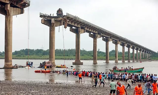 குஜராத் மாநிலம் வதோதரா மாவட்டத்தில் மஹிசாகர் ஆற்றுப் பாலம் கடந்த 2 தினங்களுக்கு முன் இடிந்து விழுந்தது. அப்போது அந்த பாலத்தில் சென்ற 6 வாகனங்கள் ஆற்றில் விழுந்தன. இதில் அந்த வாகனங்களில் இருந்த 19 பேர் பலியானார்கள். மேலும் பலர் மாயமானார்கள். சிலர் படுகாயங்களுடன் மீட்கப்பட்டு, அங்குள்ள ஆஸ்பத்திரியில் அனுமதிக்கப்பட்டனர்.