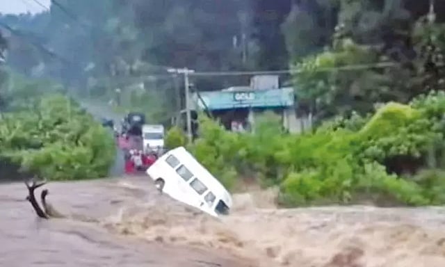 கேரள மாநிலம், இடுக்கி மாவட்டம், நெடுங்கண்டம் பகுதியில் நேற்று இரவு கன மழை பெய்தது. இதனால் ஆங்காங்கே தண்ணீர் பெருக்கெடுத்து ஓடியது. நெடுங்கண்டம் கல்லார் ஆற்றில் வெள்ளப்பெருக்கு ஏற்பட்டு இருந்தது. அப்போது கரையோரம் நிறுத்தியிருந்த வேன் ஒன்று வெள்ளத்தில் அடித்துச் செல்லப்பட்டது. அதிர்ஷ்டவசமாக வேனில் யாரும் இல்லாததால் உயிர் சேதம் தவிர்க்கப்பட்டது.