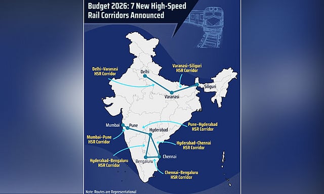 நாடாளுமன்றத்தில் நேற்று தாக்கல் செய்யப்பட்ட 2026-2027-ம் ஆண்டுக்கான மத்திய பட்ஜெட்டில் முக்கிய அறிவிப்பாக 7 புல்லட் ரெயில் பாதைகள் இடம் பெற்றிருந்தன. அதில் சென்னையும் இடம் பெற்றுள்ளது. அதாவது, சென்னை - பெங்களூரு, சென்னை - ஐதராபாத், பெங்களூரு - ஐதராபாத், ஐதராபாத் - புனே, புனே - மும்பை, சிலிகுரி - வாரணாசி, வாரணாசி - டெல்லி ஆகிய 7 வழித்தடங்கள்தான் அவை.