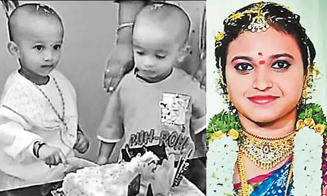 ஆந்திரா மாநிலம் குண்டூரை சேர்ந்த சென்னு மாறைய்ய பாபுவின் மகள் சாய் லட்சுமி (வயது 27) ஐதராபாத்தில் வசித்து வந்தார். அவருக்கு அங்கு சாப்ட்வேர் என்ஜினீயராக பணியாற்றும் அனில் குமார் (30) என்பவருடன் மூன்று ஆண்டுகளுக்கு முன் திருமணம் நடந்தது. இவர்களுக்கு சேதன் கார்த்திகேயா மற்றும் லாஸ்யத வள்ளி (2) என்ற இரட்டை குழந்தைகள் பிறந்தனர். இதில் மகன் கேதன் கார்த்திகேயாவுக்கு பேச்சு தெளிவாக வரவில்லை.