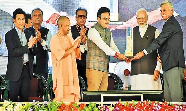 உத்தரபிரதேச முதல்-மந்திரி யோகி ஆதித்யநாத், கிரிக்கெட் பிரபலங்கள் சுனில் கவாஸ்கர், கபில்தேவ், ரவி சாஸ்திரி, இந்திய கிரிக்கெட் வாரிய துணைத்தலைவர் ராஜீவ் சுக்லா உள்ளிட்டோர் அடிக்கல் நாட்டு விழாவில் பங்கேற்றனர்.