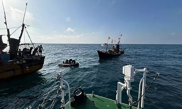 குஜராத்தின் போர்பந்தர் நகரில் இருந்து 40 கி.மீ. தொலைவில் பிரேம்சாகர் என்ற பெயரிலான இந்திய மீன்பிடி படகு ஒன்று நடுக்கடலில் சிக்கி கொண்டது. இதுபற்றிய தகவல் அறிந்ததும், இந்திய கடலோர காவல் படையை சேர்ந்த சி-161 என்ற எண் கொண்ட கப்பல் உடனடியாக சென்றது.