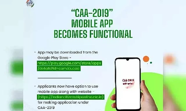 இந்திய குடியுரிமை திருத்தச் சட்டத்தின் கீழ் இந்திய குடியுரிமை பெற விரும்பும் மக்கள் விண்ணப்பம் செய்வதற்காக இணைய தளம் உருவாக்கப்பட்ட நிலையில், 'CAA-2019' என்கிற செயலியை மத்திய அரசு அறிமுகம் செய்துள்ளது.