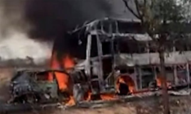 இந்த விபத்தில் கார் தீப்பிடித்து எரியத் தொடங்கியது. இந்த விபத்தில், காரில் பயணம் செய்த 6 பேர் பரிதாபமாக உயிரிழந்தனர். இருவர் படுகாயங்களுடன் மருத்துவமனையில் சிகிச்சைக்காக அனுமதிக்கப்பட்டுள்ளனர். பஸ்சும் சேதமடைந்த நிலையில், பஸ்சில் இருந்தவர்கள் பாதுகாப்பாக வெளியேற்றப்பட்டனர். இந்த விபத்து தொடர்பாக போலீசார் விசாரணை நடத்தி வருகின்றனர்.
