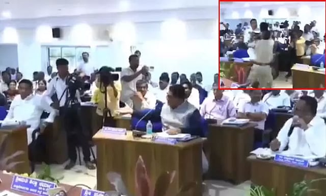ஒருவரையொருவர் கை நீட்டி குற்றச்சாட்டுகளை கூறி கொண்டிருந்தனர். அப்போது, பீம்ராவ் திடீரென எழுந்து சென்று மற்றொருவரை (எம்.எல்.ஏ. சித்து) அடிக்க பாய்ந்ததும், கூட்டத்தினரிடையே பரபரப்பானது.