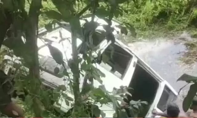 இந்நிலையில் எதிர்பாராத விதமாக ஓட்டுநரின் கட்டுப்பாட்டை இழந்து அந்த வேன் சாலையோரம் இருந்த குளத்திற்குள் பாய்ந்தது. இந்த விபத்தில் பிரசார வாகனம் முழுவதுமாக தண்ணீரில் மூழ்கியது. அப்பகுதியை சேர்ந்த மக்கள் நீரில் மூழ்கிய வேனை கயிறு கட்டி இழுத்து மேலே கொண்டு வந்தனர். இந்த சம்பவத்தில் ஓட்டுநர் அதிர்ஷ்டவசமாக சிறு காயங்களுடன் உயிர் தப்பினார்.