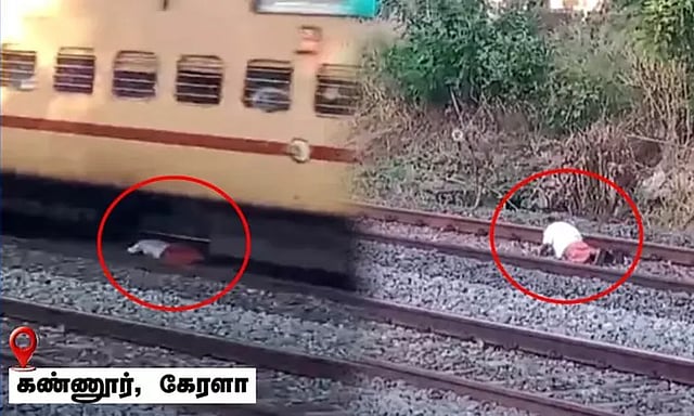 கேரள மாநிலம் கண்ணூர் மாவட்டத்திலுள்ள பன்னென் பாறையில் சிராக்கல் பகுதியை சேர்ந்த ஒருவர் குடிபோதையில் ரெயில் தண்டவாளத்தில் படுத்திருந்ததார். அவர் படுத்திருந்த ரெயில் தண்டவாளத்தை எக்ஸ்பிரஸ் ரெயில் ஒன்று கடந்து சென்றது. இதில் அவர் காயமின்றி உயிர் தப்பினார்.