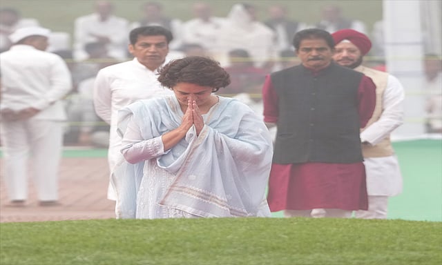 காங்கிரஸ் பொதுச் செயலாளர் பிரியங்கா காந்தி, ஜவஹர்லால் நேருவின் பிறந்தநாளையொட்டி அவரது சமாதிக்கு சென்று அஞ்சலி செலுத்தினார். மேலும் அவரை நினைவுகூர்ந்த பிரியங்கா காந்தி வெளியிட்டுள்ள பதிவில், "நவீன இந்தியாவை உருவாக்கியவருக்கு சல்யூட், பயம் உலகின் அனைத்து தீமைகளுக்கும் வேர்.