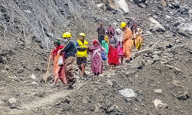 அப்போது அந்த பகுதியில் பெய்த தொடர் மழை காரணமாக, அந்த நெடுஞ்சாலையில் திடீரென்று நிலச்சரிவு ஏற்பட்டது. இதில் ஏராளமான பக்தர்கள் சிக்கினர். இதுபற்றிய தகவல் அறிந்ததும் தேசிய மற்றும் மாநில பேரிடர் மீட்புக்குழுவினர், அங்கு விரைந்து சென்றனர். பின்னர் அவர்கள் உள்ளூர் போலீசார் உதவியுடன் மீட்புப் பணியில் ஈடுபட்டனர்.