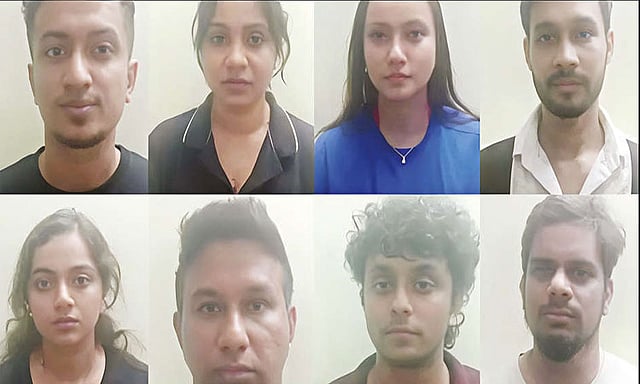 இதுதொடர்பாக திருவனந்தபுரம் சங்கமுகம் பகுதியை சேர்ந்த நிகழ்ச்சி ஏற்பாட்டாளர் ஷாஜி பெர்னாண்டோ, கலூர் பகுதியை சேர்ந்த ஆஸ்டின் ஜோஸ், வக்கீல் ரோஹித் நாயர், கொடுங்கல்லூர் பகுதியை சேர்ந்த ஜினோ முரளி, ஆலப்புழா நூரநாடு பகுதியை சேர்ந்த அக்பர் ஷா, பல் டாக்டர் பென்சி ராவுத்தர், கொல்லத்தை சேர்ந்த பிசியோதெரபிஸ்ட் சையத் அலி பாத்திமா, கல்லூரி மாணவர் அமல் ரவுப் ஆகிய 8 பேரை போலீசார் கைது செய்தனர். இதில் 3 பெண்கள் அடங்குவர்.