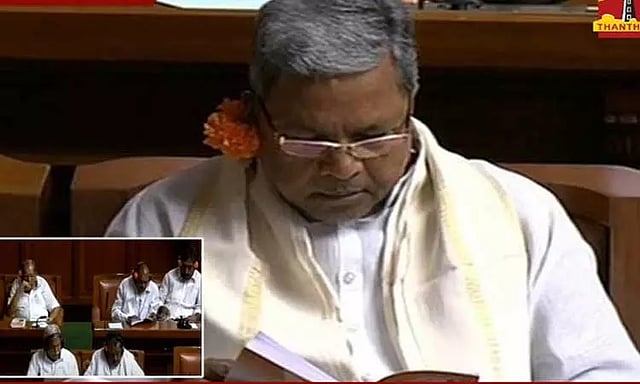 கர்நாடக பட்ஜெட் கூட்டத்தொடரில் பங்கேற்க அம்மாநில எதிர்க்கட்சித்தலைவர் சித்தராமையா காதில் பூவுடன் சட்டப்பேரவைக்கு வருகை தந்தார். மேலும், சித்தராமையா தலைமையில் காங்கிரஸ் எம்.எல்.ஏ.க்கள் காதில் பூ வைத்து தர்ணா போராட்டத்தில் ஈடுப்பட்டுள்ளனர்.