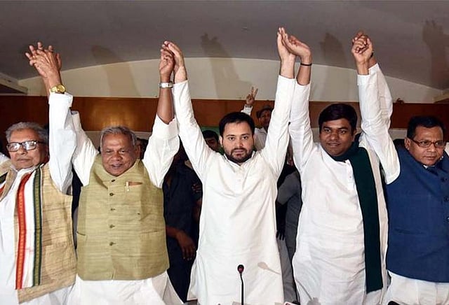ராஷ்டிரீய ஜனதாதளம் 20 தொகுதிகளிலும் (மார்க்சிஸ்ட் லெனினிஸ்ட் கம்யூனிஸ்டு ஒரு தொகுதி உள்பட), காங்கிரஸ் 9 தொகுதிகளிலும், உபேந்திரா குஷ்வாஹாவின் ராஷ்டிரீய லோக் சமதா கட்சி 5 தொகுதிகளிலும், ஜித்தன்ராம் மன்ஜியின் ஹிந்துஸ்தானி அவாம் மோர்ச்சா கட்சி, முகேஷ் ஷானியின் விகாஷீல் இன்சான் கட்சி ஆகியவை தலா 3 தொகுதிகளிலும் போட்டியிடுகின்றன. பாடலிபுத்ரா தொகுதியில் லாலுவின் மகள் மிசா பார்தியும், சாசரம் தொகுதியில் காங்கிரஸ் வேட்பாளர் மீரா குமாரும் போட்டியிடுகிறார்கள்.