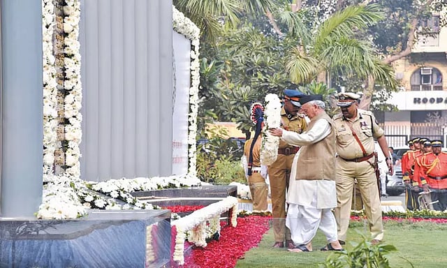 இந்த கொடூர தாக்குதல் சம்பவம் நடந்து நேற்று 14 ஆண்டுகள் ஆனது. இதையொட்டி 14-வது ஆண்டு நினைவு தின மரியாதை செலுத்தும் நிகழ்ச்சி மும்பை போலீஸ் கமிஷனர் அலுவலக வளாகத்தில் உள்ள உயிரிழந்த தியாகிகள் நினைவிடத்தில் நடந்தது.