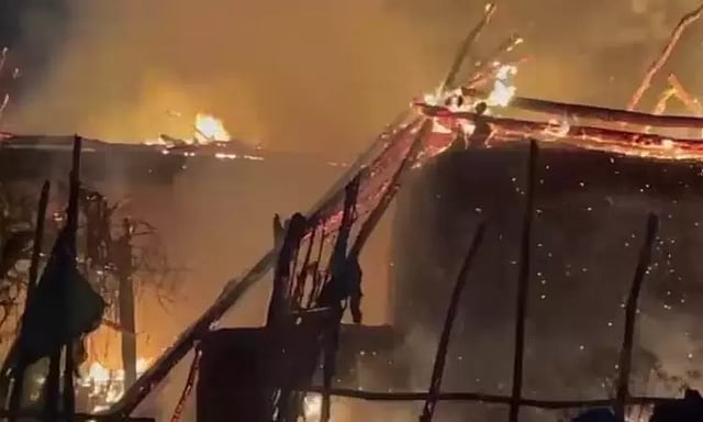 இந்நிலையில், இந்த கிராமத்தில் உள்ள குடிசை வீட்டில் நேற்று இரவு மின்கசிவு காரணமாக திடீரென தீ விபத்து ஏற்பட்டது. தீ மளமளவென அருகில் உள்ள குடிசை வீடுகளுக்கும் பரவியது. இந்த தீ விபத்தில் 40 வீடுகள் எரிந்து நாசமாகின.