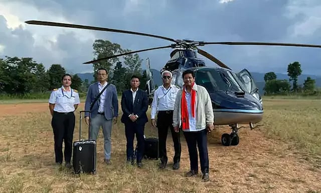 இவர் நேற்று மேற்கு கரோ மலை மாவட்டத்தின் தலைநகரான டுராவுக்கு சென்று விட்டு, தலைநகர் ஷில்லாங்கிற்கு ஹெலிகாப்டரில் திரும்பிக் கொண்டிருந்தார்.