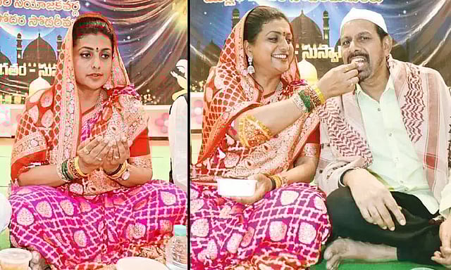 திருப்பதி மாவட்டம் புத்தூர் மண்டலம் வேப்பகுண்டா அருகில் உள்ள ஒரு அரங்கில் ரம்ஜான் நோன்பு திறப்பு நிகழ்ச்சி நடந்தது. நிகழ்ச்சியில் மந்திரி ஆர்.கே.ரோஜா, அவரின் கணவரும் சினிமா இயக்குனருமான ஆர்.கே.செல்வமணி ஆகியோர் பங்கேற்று பிரார்த்தனை செய்தனர்.