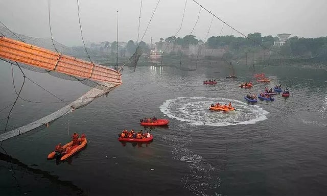 குஜராத் மாநிலம் மோர்பி என்ற இடத்தில் ஆற்றின் குறுக்கே அமைக்கப்பட்டிருந்த மிக பழமையான தொங்கு பாலம் கடந்த அக்டோபர் மாதம் திடீரென இடிந்து விழுந்தது. பாலம் புதுப்பிக்கப்பட்டு திறக்கப்பட்ட 4 நாளில் இந்த பயங்கர விபத்து ஏற்பட்டது. இதில், 135 பேர் உயிரிழந்தனர். இதுதொடர்பாக போலீசார் வழக்குப்பதிவு செய்து விசாரணை நடத்திவருகின்றனர்.