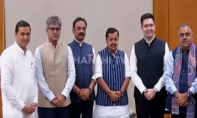 அரவிந்த் கெஜ்ரிவாலின் ஆம் ஆத்மி கட்சி சார்பில் நாடாளுமன்ற மாநிலங்களவையில் 10 உறுப்பினர்கள் இருந்தனர். இதில் கட்சியின் மாநிலங்களவை துணைத்தலைவராக ராகவ் சத்தா நியமிக்கப்பட்டு இருந்தார்.