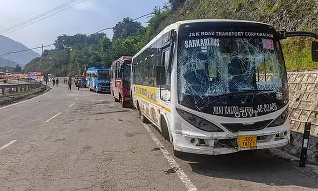 இதில் ஒரு குழுவினர் சென்ற ஏராளமான பஸ்கள் ஜம்மு-ஸ்ரீநகர் தேசிய நெடுஞ்சாலையில் அணிவகுத்து சென்று கொண்டிருந்தன. காலை 8 மணியளவில் ராம்பன் மாவட்டத்தின் சந்தர்கோட் அருகே சென்றபோது, அணிவகுப்பின் கடைசி பஸ்சின் பிரேக் பழுதானதாக தெரிகிறது.