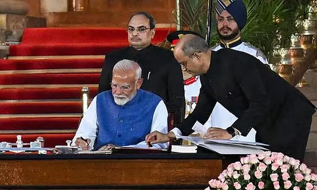 பிரதமராக நரேந்திர மோடி நேற்று பதவியேற்றுக் கொண்டார். அவருடன் 30 கேபினட் அமைச்சர்கள், 5 தனிப்பொறுப்புடன் கூடிய மந்திரிகள் மற்றும் 36 இணை மந்திரிகள் என 71 பேர் பதவியேற்றனர். இவர்களுக்கு ஜனாதிபதி திரவுபதி முர்மு பதவி பிரமாணம் செய்து வைத்தார். புதிதாக பதவியேற்றுக்கொண்ட மத்திய அமைச்சர்களுக்கு வாழ்த்துகளை தெரிவித்த பிரதமர், மக்களின் முன்னேற்றத்துக்கு அயராது உழைக்க வேண்டும் எனவும் அறிவுறுத்தினார்.