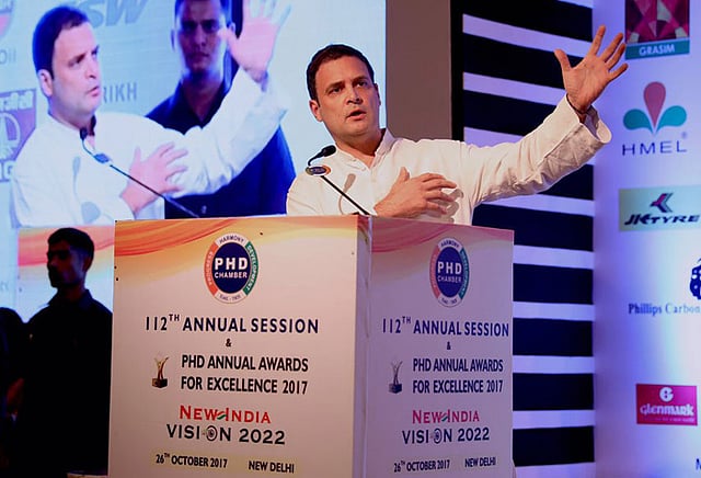 புதுடெல்லியில் பிஎச்டி சேம்பர் ஆஃப் காமர்ஸ் அண்ட் இண்டஸ்ட்ரீஸில் நடைபெற்ற கருத்தரங்கில் பேசிய காங்கிரஸ் துணை தலைவர் ராகுல் காந்தி மத்திய அரசின் ரூபாய் நோட்டு ஒழிப்பு நடவடிக்கை மற்றும் ஜி.எஸ்.டி. வரிவிதிப்பு கொள்கையை கடுமையாக விமர்சனம் செய்தார். தேசத்தில் இளைஞர்களுக்கு வேலைவாய்ப்பு உருவாக்கப்படும் என பிரதமர் மோடி உறுதியளித்த விவகாரம் தொடர்பாக, அவரை தாக்கி பேசிய ராகுல் காந்தி, இளைஞர்களுக்கு அதிகளவில் வேலைவாய்ப்பு அளிப்பதாக வாக்குறுதி அளித்தார், இப்போது ஒவ்வொரு நாளும் சீனா 5000 பேருக்கு வேலை வாய்ப்பை உருவாக்குகிறது, ஆனால் இந்தியா 450 பேருக்கு மட்டுமே வேலைவாய்ப்பு உருவாக்குகிறது என சாடினார்.