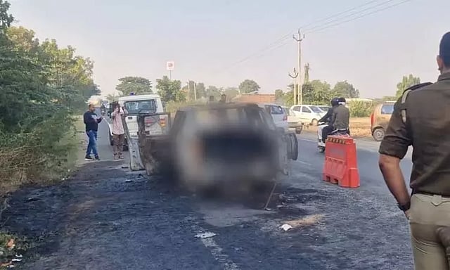 இந்நிலையில், மோடசா - தன்சுரா நெடுஞ்சாலையில் நள்ளிரவு சென்றுகொண்டிருந்தபோது ஆம்புலன்சில் திடீரென தீப்பற்றியது. உடனடியாக ஆம்புலன்சை டிரைவர் நிறுத்தியுள்ளார். ஆம்புலன்சில் இருந்து டிரைவர் உள்பட 3 பேர் கிழே இறங்கியுள்ளனர். ஆனால், தீ மளமளவென ஆம்புலன்ஸ் முழுவதும் பரவியுள்ளது. இந்த சம்பவத்தில் ஆம்புலன்சில் பயணித்த பிறந்து ஒருநாளே ஆன பச்சிளம் குழந்தை, குழந்தையின் தந்தை, டாக்டர் உள்பட 4 பேர் உடல்கருகி பரிதாபமாக உயிரிழந்தனர்.