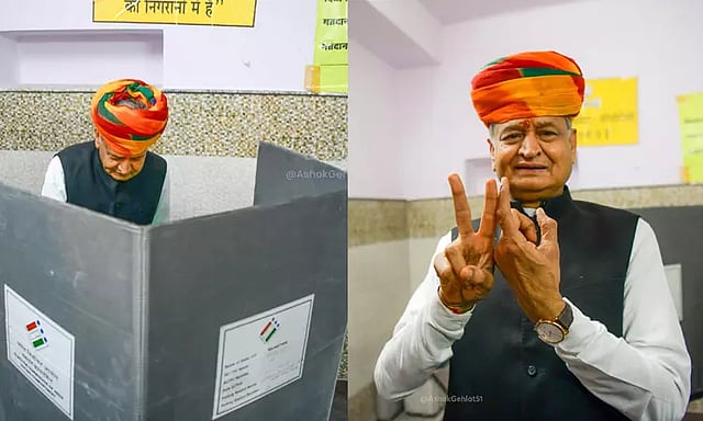 ராஜஸ்தானில் இன்று சட்டசபை தேர்தல் நடைபெறுகிறது. காலை 7 மணி முதல் வாக்குப்பதிவு விறுவிறுப்பாக நடைபெறுகிறது. முதல் மந்திரி அசோக் கெலாட் சர்தார்புரா தொகுதிக்கு உட்பட்ட வாக்குச்சாவடிக்கு சென்று ஓட்டு போட்டார்.
