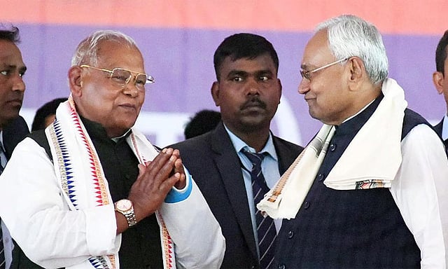 பீகார் மாநில முதல்-மந்திரி நிதிஷ்குமார் சமீபத்தில் பாட்னாவில் ஒரு நிகழ்ச்சியில் தேசிய கீதம் இசைத்தபோது, கையசைத்துக் கொண்டும், சிரித்துக் கொண்டும் இருந்தார். அவர் தேசிய கீதத்தை அவமதித்து விட்டதாக எதிர்க்கட்சிகள் குற்றம் சாட்டின.