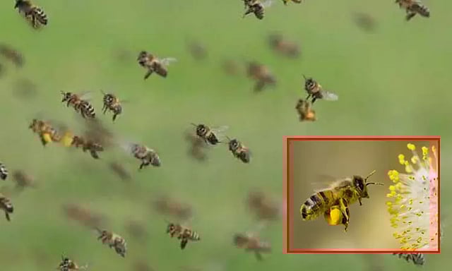 அப்போது, அவர்களை நோக்கி மரங்களில் இருந்த தேனீக்கள் பாய்ந்து வந்தன. அவை கூடியிருந்த கிராமவாசிகளை சூழ்ந்து கொண்டு தாக்கின. இதில், வலி பொறுக்க முடியாமல் பலர் தப்பியோடி உள்ளனர்.