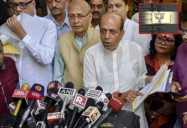 இதுபற்றி காங்கிரஸ் தலைவர் அபிஷேக் சிங்வி கூறும்பொழுது, மின்னணு வாக்கு பதிவு இயந்திரங்களில், கட்சி சின்னத்தின் கீழ் பா.ஜ.க. என்ற எழுத்துகள் உள்ளன. எந்த கட்சியும் தங்களது கட்சி பெயர் மற்றும் சின்னம் ஆகியவற்றை ஒன்றாக பயன்படுத்த முடியாது என கூறினார்.