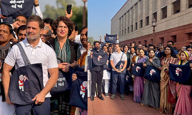 போராட்டத்தில் பிரதமர் மோடி, அதானி புகைப்படங்கள் அச்சிடப்பட்ட பைகளை அணிந்து எம்.பி.க்கள் ஈடுபட்டனர். இதனால் இரு அவைகளும் முடங்கின. அதானியை கைது செய்யவும், நாடாளுமன்ற கூட்டுக் குழு அமைத்து விசாரணை மேற்கொள்ளவும் எதிர்க்கட்சிகள் மத்திய அரசை வலியுறுத்தி வருகின்றன.