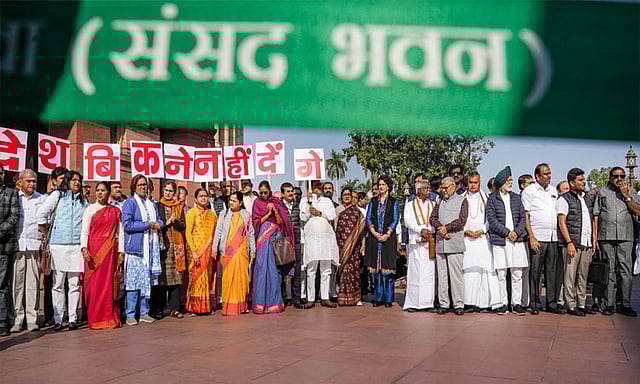 இந்நிலையில், அதானி விவகாரம் தொடர்பாக நாடாளுமன்ற கூட்டுக்குழு விசாரணை நடத்த உத்தரவிடக்கோரி இந்தியா கூட்டணி எம்.பி.க்கள் போராட்டத்தில் ஈடுபட்டனர். நாடாளுமன்ற வளாகத்தில் நடைபெற இந்த போராட்டத்தில் காங்கிரஸ், திமுக மற்றும் இடதுசாரிக் கட்சிகளை சேர்ந்த எம்.பி.க்கள் கலந்துகொண்டனர். போராட்டத்தின்போது, நாட்டை விற்க விடமாடோம் என்ற பாதகைகளை ஏந்தியும், பிரதமர் மோடி, அதானிக்கு எதிராக கோஷங்களை எழுப்பியும் போராட்டத்தில் ஈடுபட்டனர்.