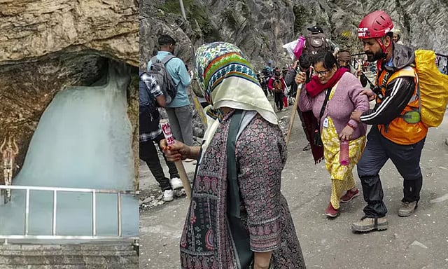 ஜம்மு- காஷ்மீரில் இமயமலையில் உள்ள அமர்நாத் குகைப்பகுதியில் இந்து மதக்கடவுள் சிவன் கோவில் உள்ளது. பனிசூழ்ந்த மலையில் இயற்கையாக உருவாகும் பனி லிங்கத்தை தரிசிக்க ஆண்டுதோறும் லட்சக்கணக்கான பக்தர்கள் யாத்திரையாக சென்று வருகின்றனர். இந்த ஆண்டுக்கான அமர்நாத் யாத்திரை கடந்த 3ம் தேதி தொடங்கியது. யாத்திரை தொடங்கிய நாள் முதல் தினமும் ஆயிரக்கணக்கான பக்தர்கள் பனி லிங்கத்தை தரிசனம் செய்து வருகின்றனர்.