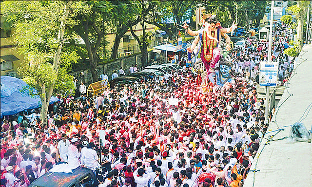 நேற்று 11-ம் நாள் பூஜைக்குப் பின்பு, விநாயகர் சிலைகள் ஊர்வலமாக எடுத்துச் செல்லப்பட்டு கரைக்கும் நிகழ்வு, திருவிழா போல கோலாகலமாக நடந்தது. மும்பையின் பல்வேறு இடங்களில் வைக்கப்பட்டிருந்த சிலைகள், முக்கிய சாலைகளின் வழியாக ஊர்வலமாக எடுத்து வரப்பட்டது. ஊர்வலத்தில் மக்கள் வெள்ளத்தில் விநாயகர் சிலைகள் மிதந்து வந்தன. பக்தர்கள், மேளதாளங்கள் வாசித்தபடி ஆடிப்பாடி ஆரவாரத்துடன் ஊர்வலமாக சென்றனர். பக்தர்கள் உற்சாகமாக இதில் பங்கு பெற்றனர். பின்னர் சிலையை ஊர்வலமாக எடுத்து சென்று கடலில் கரைத்தனர்.