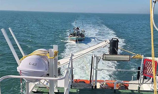 இந்திய கடல் எல்லைக்குள் சட்டவிரோதமாக நுழைந்த படகு ஒன்றை கடலோர காவல் படையினர் தடுத்து நிறுத்தி பறிமுதல் செய்தனர். அந்த படகில் மொத்தம் 11 பேர் இருந்த நிலையில், அவர்கள் அனைவரும் கைது செய்யப்பட்டு, குஜராத் ஜாகவ் கடலோர காவல் படையினரிடம் ஒப்படைக்கப்பட்டுள்ளனர். கைது செய்யப்பட்டவர்களிடம் தீவிர விசாரணை நடத்தப்பட்டு வருவதாக தெரிவிக்கப்பட்டுள்ளது.