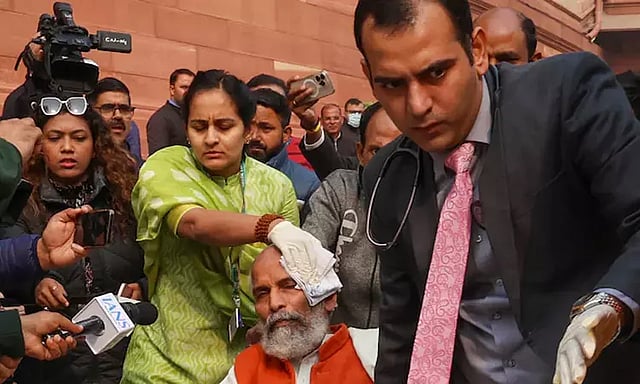 அமித்ஷாவின் இந்த கருத்து எதிர்க்கட்சிகளிடையே கடும் கொந்தளிப்பை ஏற்படுத்தியது. அம்பேத்கரை அவமதித்ததாக கூறி காங்கிரஸ் மற்றும் பாஜக மாறிமாறி குற்றம்சாட்டின. அம்பேத்கர் விவகாரம் தொடர்பாக கடந்த 19ம் தேதி நாடாளுமன்ற வளாகத்தில் பா.ஜ.க. எம்.பி.க்கள் மற்றும் இந்தியா கூட்டணி எம்.பி.க்கள் என இரு தரப்பினரும் மாறி மாறி போராட்டத்தில் ஈடுபட்டனர். போராட்டம் நடத்திய எம்.பி.க்களை நாடாளுமன்ற பிரதான வாயிலில் ராகுல் காந்தி தலைமையிலான காங்கிரஸ் எம்.பி.க்கள் வந்து தாக்கியதாக கூறப்படுகிறது. இதில் பாஜக எம்.பி.க்கள் பிரதாப் சிங் சாரங்கி, முகேஷ் ராஜ்புத் ஆகிய இருவருக்கும் பலத்த காயம் ஏற்பட்டது. இதையடுத்து இருவரும் மருத்துவமனையில் அவசர சிகிச்சை பிரிவில் அனுமதிக்கப்பட்டனர்.