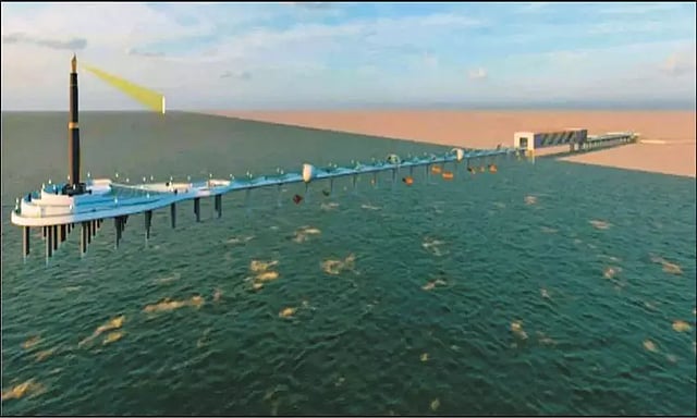 கருணாநிதி நினைவிடத்தின் பின் பகுதியில் பெரிய கேட் அமைத்து கண்ணாடி பாலம் வழியாக மக்கள் கடல் மேல் நடந்து சென்று இந்த நினைவு சின்னத்தை அடையும் வகையில் கட்டி முடிக்க திட்டம் தீட்டப்பட்டுள்ளது. இந்த பிரமாண்ட நினைவு சின்னத்துக்கு முத்தமிழ் அறிஞர் டாக்டர் கலைஞர் பேனா நினைவு சின்னம் என்று பெயரிடப்பட்டு உள்ளது. மெரினா கடலில் பேனா நினைவுச் சின்னம் அமைக்க 15 நிபந்தனைகளுடன் மத்திய அரசு ஒப்புதல் கடந்த மாதம் ஒப்புதல் வழங்கியது. மத்திய அரசின் ஒப்புதல் கிடைத்ததைத் தொடர்ந்து, அடுத்தகட்ட நடவடிக்கையில் தமிழக அரசு ஈடுபட்டுள்ளது.