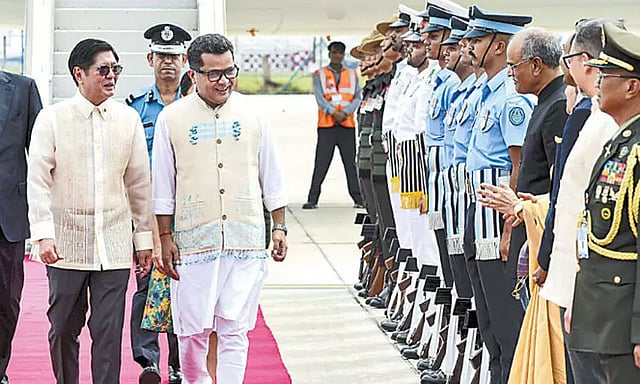 பிலிப்பைன்ஸ் அதிபர் பெர்டினாண்ட் ரொமுவால்டெஸ் மார்கோஸ் ஜூனியர் தனது மனைவி, மந்திரிகள் உள்ளிட்ட உயர்மட்ட குழுவினருடன் டெல்லிக்கு இன்று வந்தார். 5 நாள் அரசு முறை பயணமாக இந்தியா வந்த அவரை வெளியுறவுத்துறை இணை மந்திரி பபித்ரா மார்கெரிட்டா வரவேற்றார். விமான நிலையத்தில் பாதுகாப்பு படையினரின் அணிவகுப்பு மற்றும் சிவப்பு கம்பள மரியாதையும் அவருக்கு வழங்கப்பட்டது.