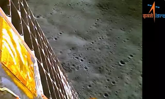 இந்த நிலையில், லேண்டரில் உள்ள இமேஜர் கேமரா, நிலவில் லேண்டர் தரையிறங்குவதற்கு சில வினாடிகளுக்கு முன்பு எடுத்த புகைப்படம் வெளியிடப்பட்டு உள்ளது. அதில் பல இடங்களில் சிறிய மற்றும் பெரிய பள்ளங்கள் காணப்படுகின்றன.